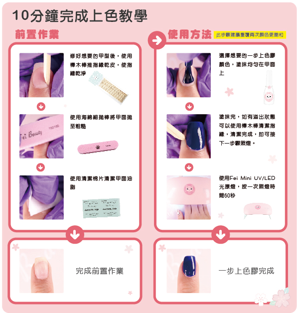 2.沾取適量塗抹至真甲,即可照燈60秒完成,此步驟重複兩次。